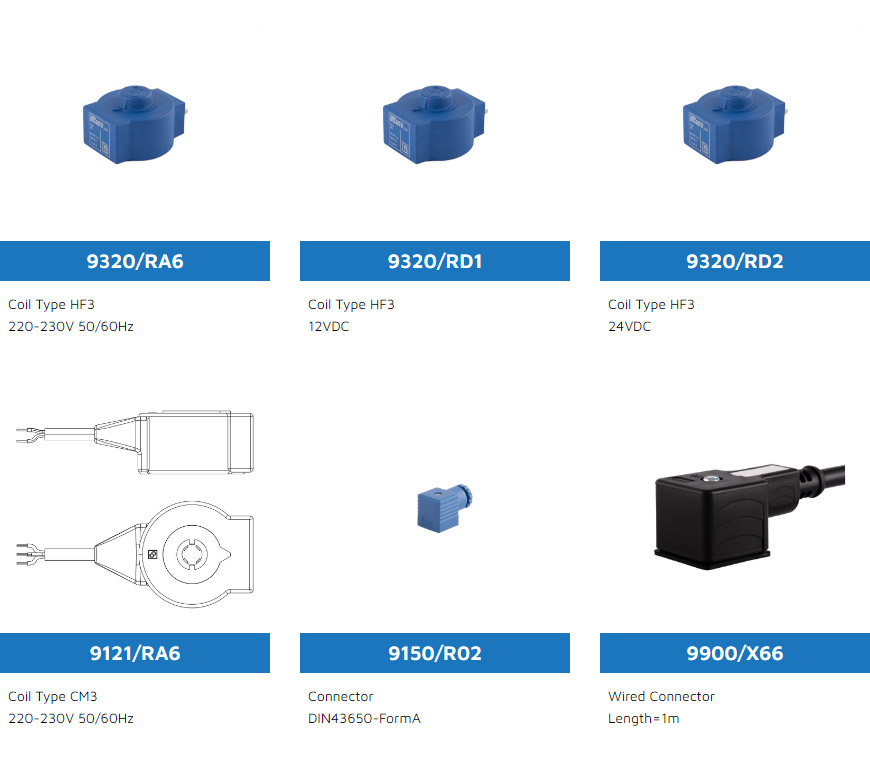9320系列線圈具有“FAST LOCK”新固定系統;常閉電磁閥使用的9120和9121系列線圈具有齒輪固定系統。適用電壓:220/230 VAC - 50/60 Hz, 12 VDC, 24 VDC, 27 VDC, 48 VDC.IP65級防護等級。