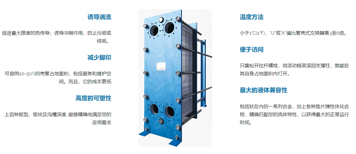 SUPERCHANGER®板式換熱器, 也被稱作墊片式換熱器或 GPHE,可以將一個流體的熱量高效的傳導給另一個流體, 通常是水與水, 或蒸汽與液體。這種模塊化的熱交換器由框架, 板片,密封墊等構成,可以做成滿足各種工況的設備。它廣泛的應用于與管殼式換熱器相同的工況。