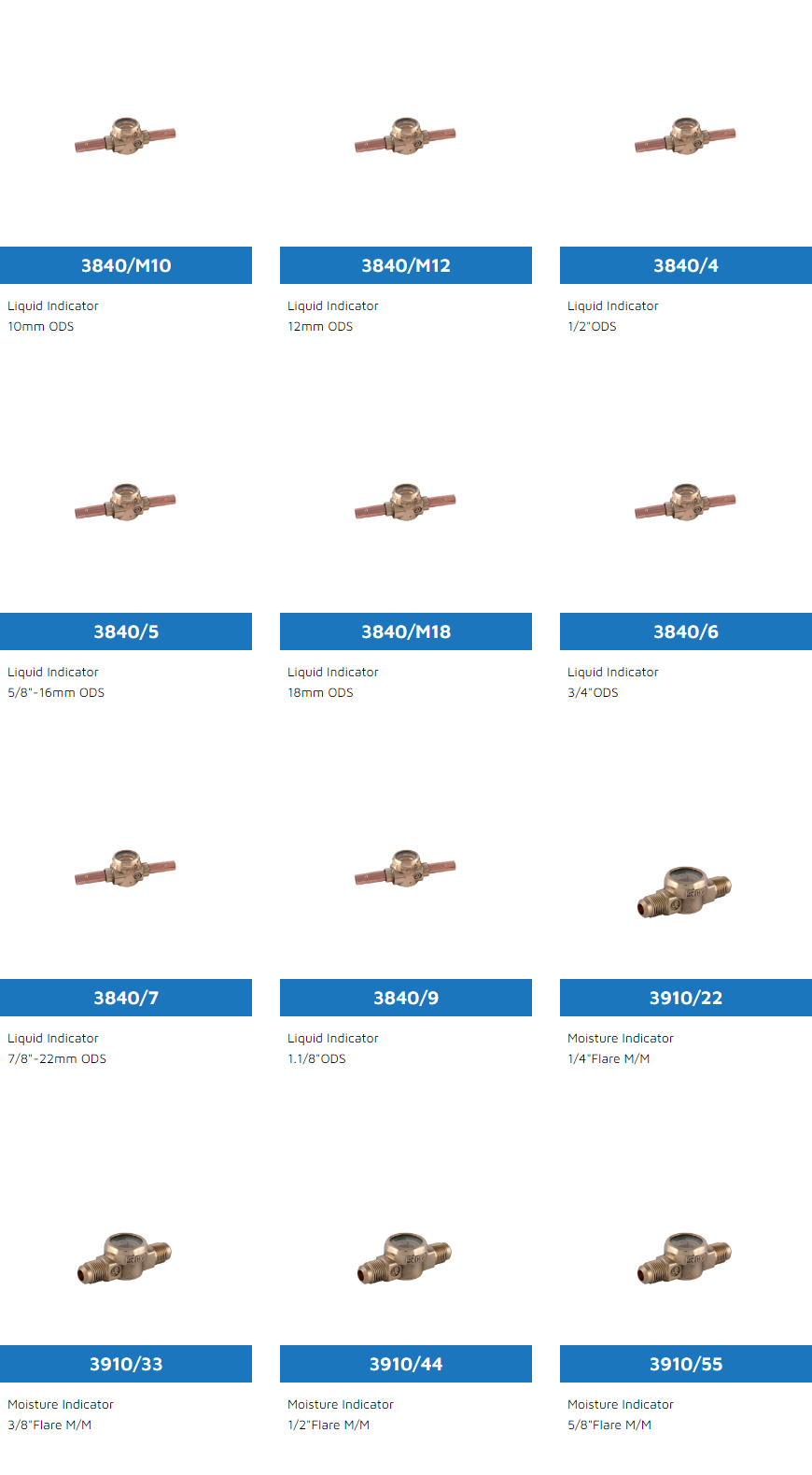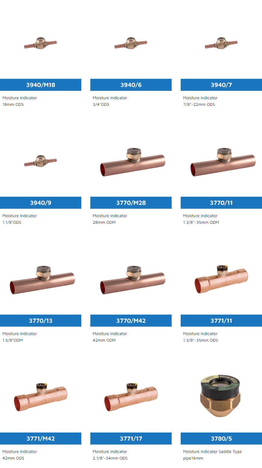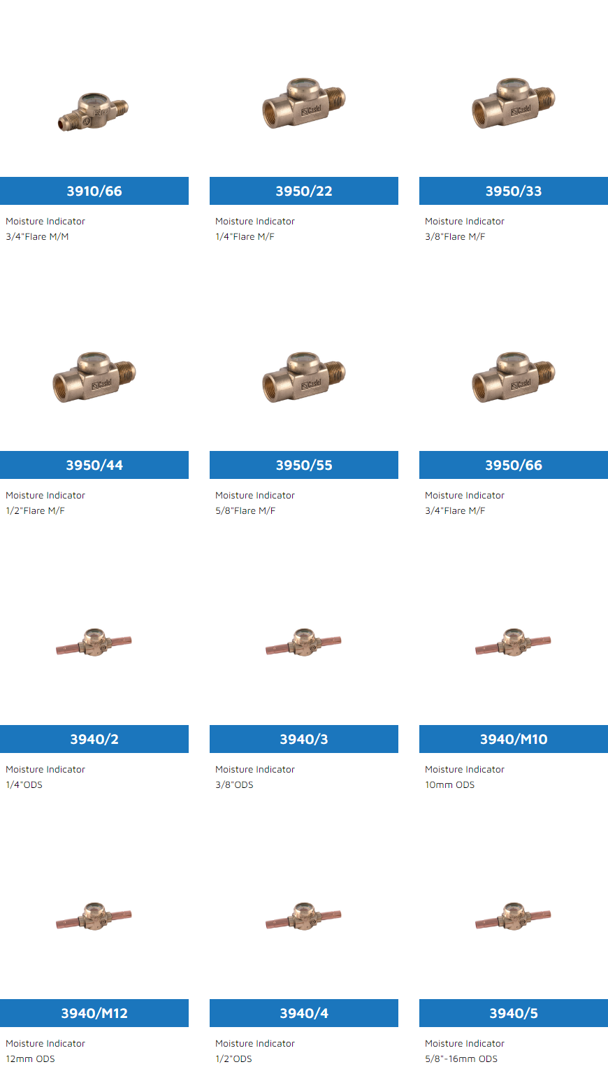 液位和液體/水分指示器可快速、安全地檢查液體管路中的制冷劑流體狀況,以確定流動規律和是否存在水分。液體/濕度指示器由一個敏感的環形元件組成,根據系統中的濕度百分比,它可以改變顏色,從綠色到黃色。如果系統的充注和運行條件正常,制冷劑液在指示器的“透鏡”下呈現完全液態。當敏感元件變成“黃色”時,就該更換干燥過濾器了。氣泡的存在表明冷媒液體正在沿液管部分蒸發。