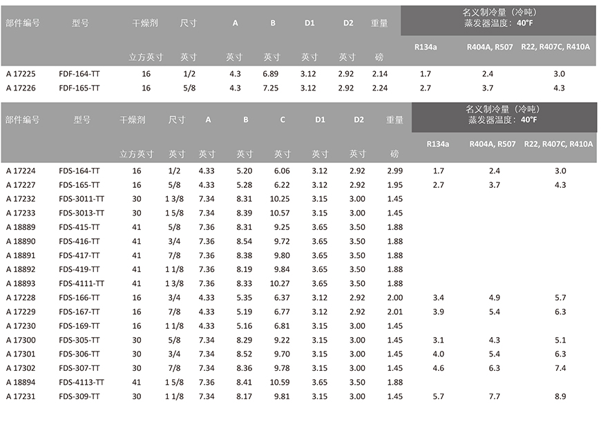 適用于所有CFC, HCFC 和 HFC 制冷劑和冷凍油,以及要求使用XHII干燥劑的制冷劑