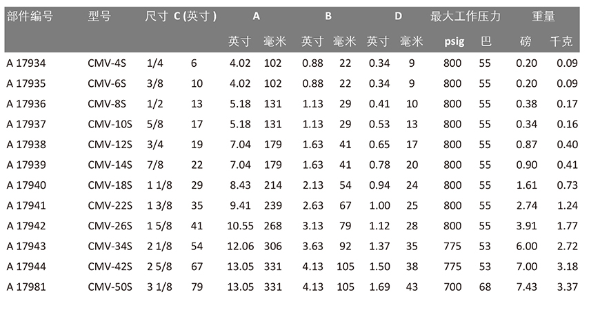 zui大異常壓力(MAP):見下表全密封成型的紫銅體確保零泄漏