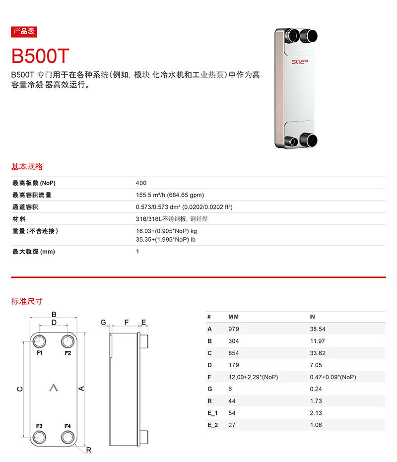 B500T 專門用于在各種系統(例如,模塊化冷水機和工業熱泵)中作為高容量冷凝器高效運行。