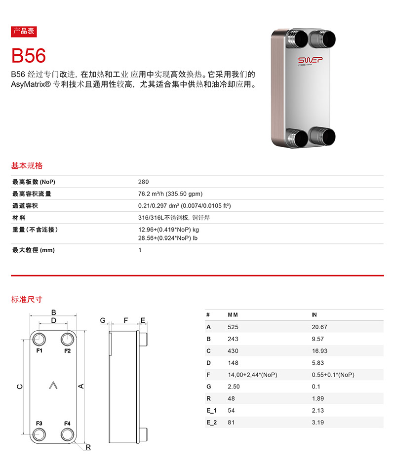 B56 經過專門改進,在加熱和工業應用中實現高效換熱。它采用我們的 AsyMatrix® 專利技術且通用性較高,尤其適合集中供熱和油冷卻應用。